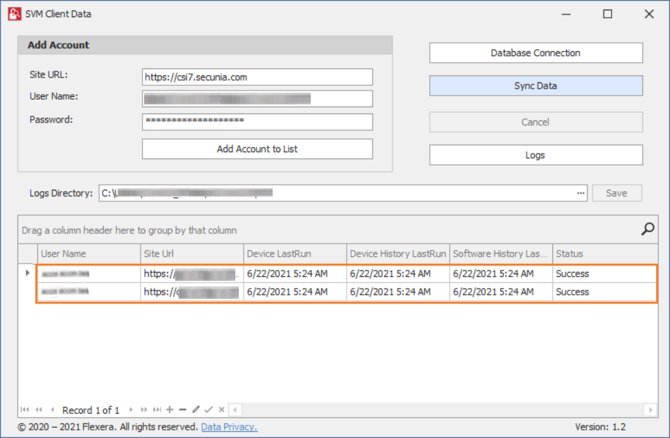 4. Click the Sync Data button. It starts pulling data to the Database.