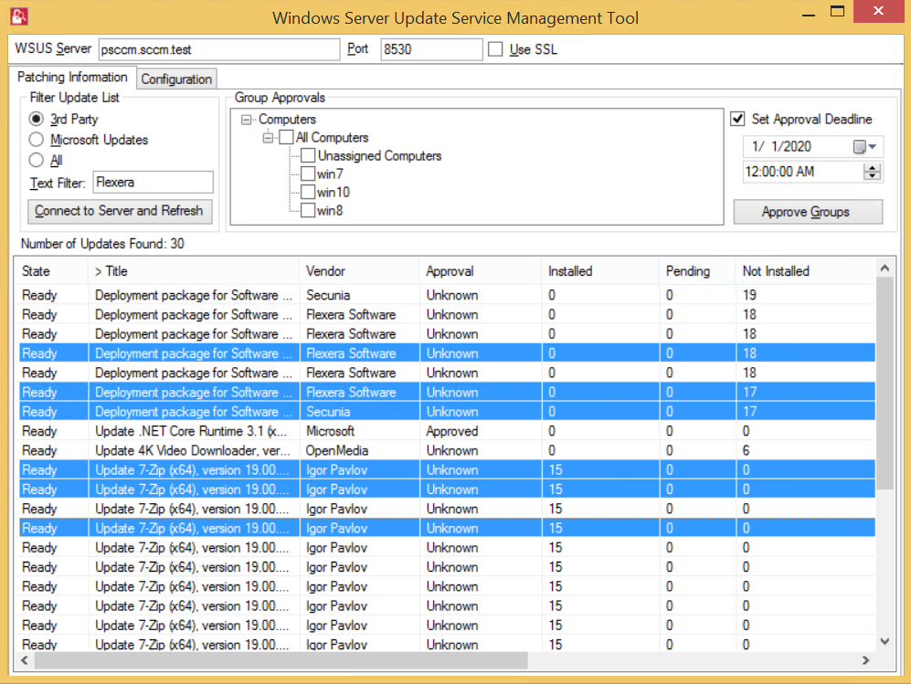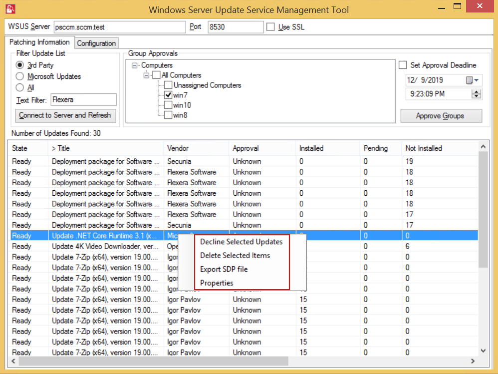 tipWSUS management tool allows you to Approve, Decline, and Delete multiple patches at the same time.